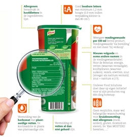 Les 14 allergènes, qui doivent déjà être mentionnés sur les emballages dans toute l’Europe depuis 2005, doivent maintenant être mis en évidence dans la liste des ingrédients, par exemple mis en MAJUSCULES.