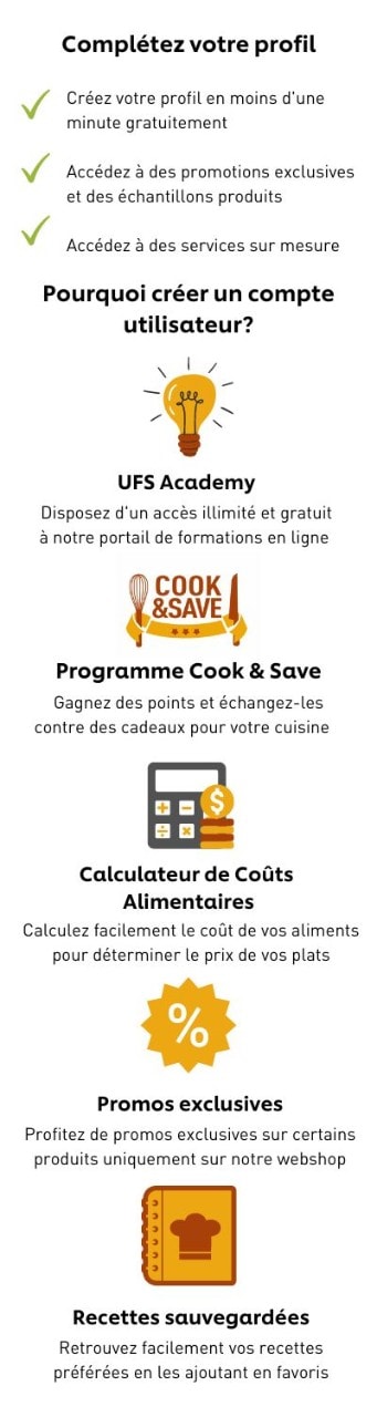 En passant commande sur le webshop de Food Solutions vous nous donnez l’ordre de transmettre la commande et vos données à votre place au grossiste de votre choix. Ceci est un service de Food Solutions. Votre grossiste vend les produits en direct aux conditions que vous avez convenues. Les prix mentionnés sur le webshop de Food Solutions sont des prix de vente conseillé pour les grossistes et ne sont transmis qu’a titre informatif. Le prix réel est déterminé par le grossiste. Le prix final que vous payez est selon les conditions que vous avez avec votre grossiste et peut donc être identique, plus bas ou plus élevé. Food Solutions ne peut être tenu responsable pour les produits tiers qui ne font pas partie de l’assortiment Food Solutions et que le grossiste offrirait via le webshop de Food Solutions. Souhaitez-vous plus d’informations au sujet de votre grossiste, contactez-nous.