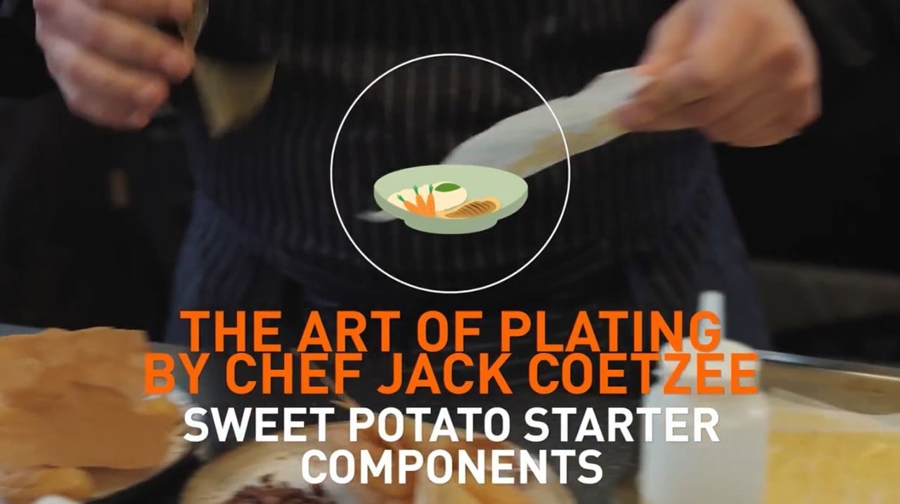 À l'aide d'une patate douce, le chef Coetzee aborde les composantes d'un bon plat. De la température à la texture, découvrez les éléments esthétiques ainsi que la recette de l'assiette de patates douces d'Urbanologi.