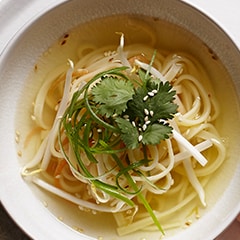 En Asie, il n’est pas rare de consommer un bol de ramen comme déjeuner. Ce bouillon relevé est enrichi de nouilles, d’un œuf mollet, de viande tendre et de légumes. Garnissez-le de jeunes oignons, d’oignons caramélisés ou de coriandre, et vous obtenez un repas gagnant, à déguster bruyamment, rien que pour le plaisir !