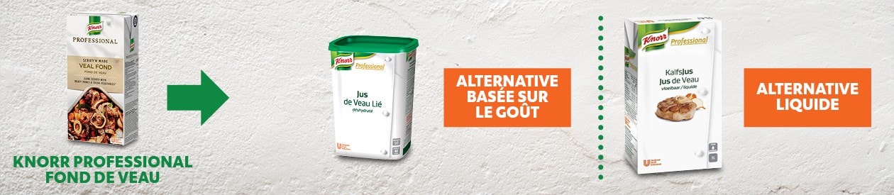 - Knorr Professional Jus de Veau Lié : Poudre 1 kg, rendement 20 l, dosage : 50 g/l, sans gélatine, jus au lieu d'un fond