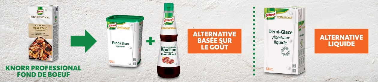 - Knorr Professional Demi-Glace : Liquide 1 l, rendement 1 l, profil de saveurs et utilisation différents