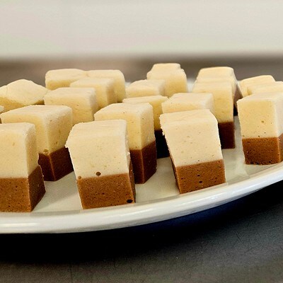 "Bien sûr ! Pour donner forme aux cubes, il faut penser à superposer les couches et à changer les modes de découpe. Faites également des essais avec la quantité de Knorr Texture pour déterminer la fermeté des bouchées fingerfood. Vous pouvez tester à l’infini ! En été, par exemple, nous ajoutons du thé à la menthe fraîche dans les blocs pour une sensation rafraîchissante en bouche. Mais le vin blanc ou rouge, ou des friandises comme les cuberdons ou les Bounty, se travaillent aussi facilement avec la gelée en blocs. Ces possibilités rendent le travail en cuisine vraiment amusant.”
