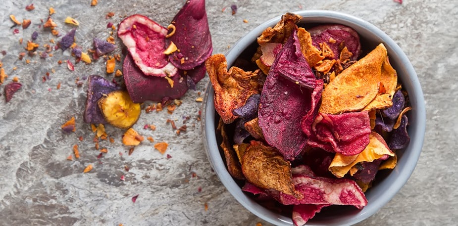 Exemple : plutôt que de la charcuterie, servez une assiette de « mezze » vert ou des chips de carottes, de betteraves, de panais, de céleri-rave ou de courgettes à l’apéritif.