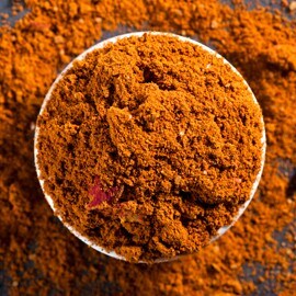 - Mélange d’herbes aromatiques et épicées marocaines, généralement composé de noix de muscade, de gingembre, de coriandre, de cumin, de cardamome, de clou de girofle, de cannelle, de piment, de graines d’anis et de poivre (noir et blanc).