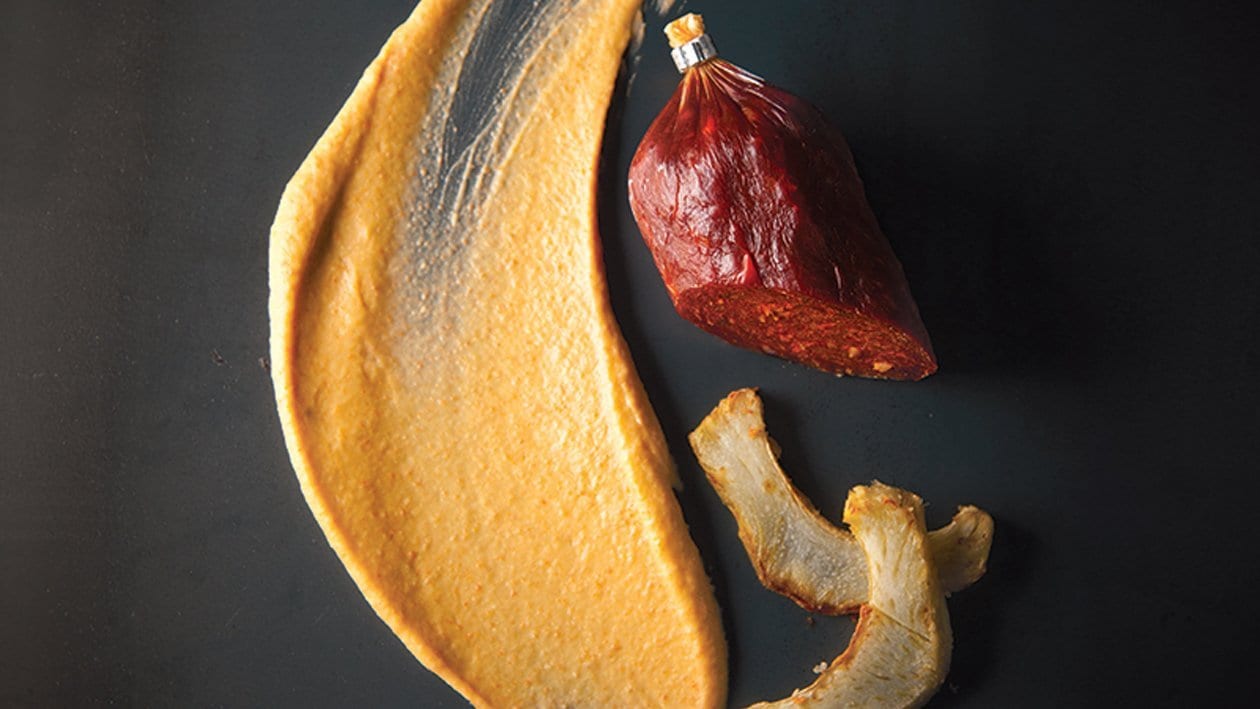 Crème de chorizo et purée d’artichauts