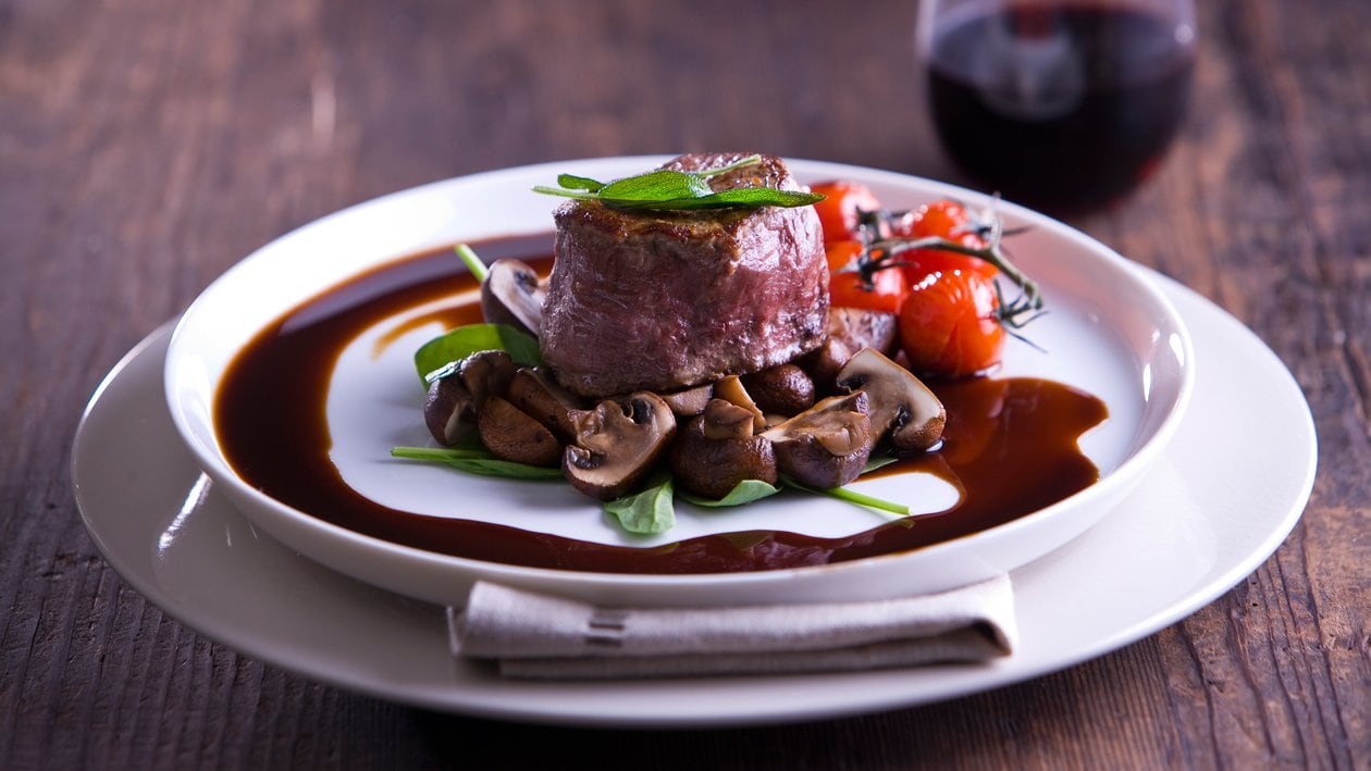 Filet d’Angus, champignons chataîgne, tomate fumée, jus au balsamique