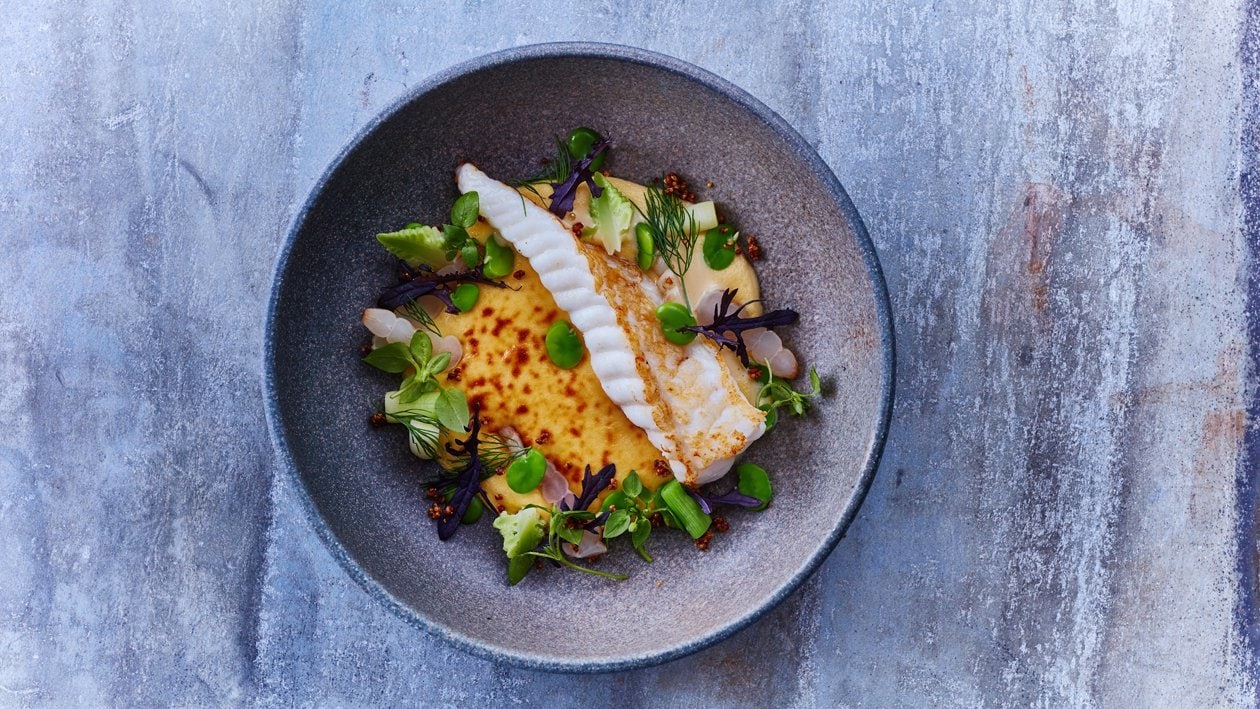 Lotte grillée, sauce au vin blanc et légumes de saison