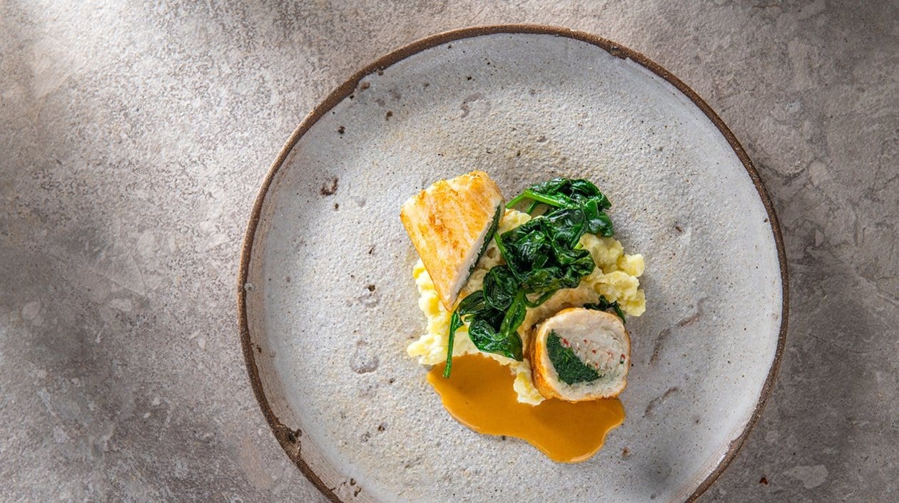 Paupiette de plie au tourteau et aux épinards