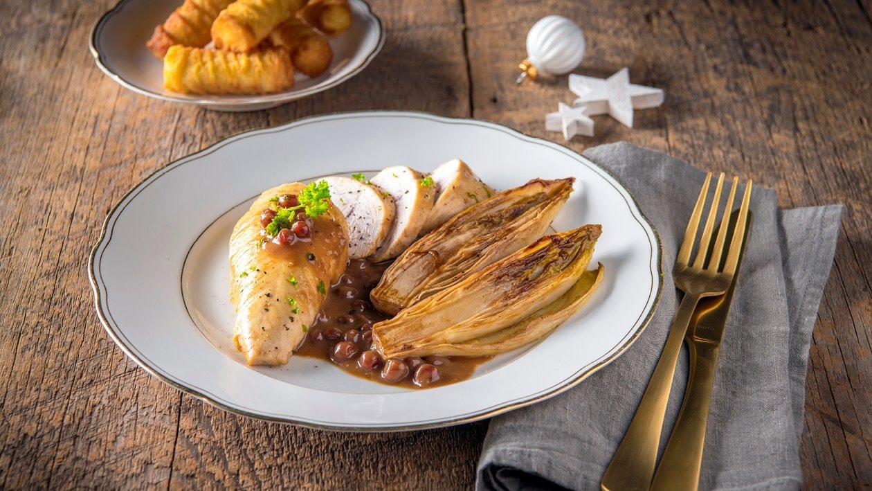 Pintade en saumure à la sauce aux canneberges et au whisky