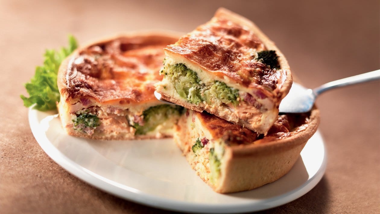 Quiche au broccoli, lard et saumon