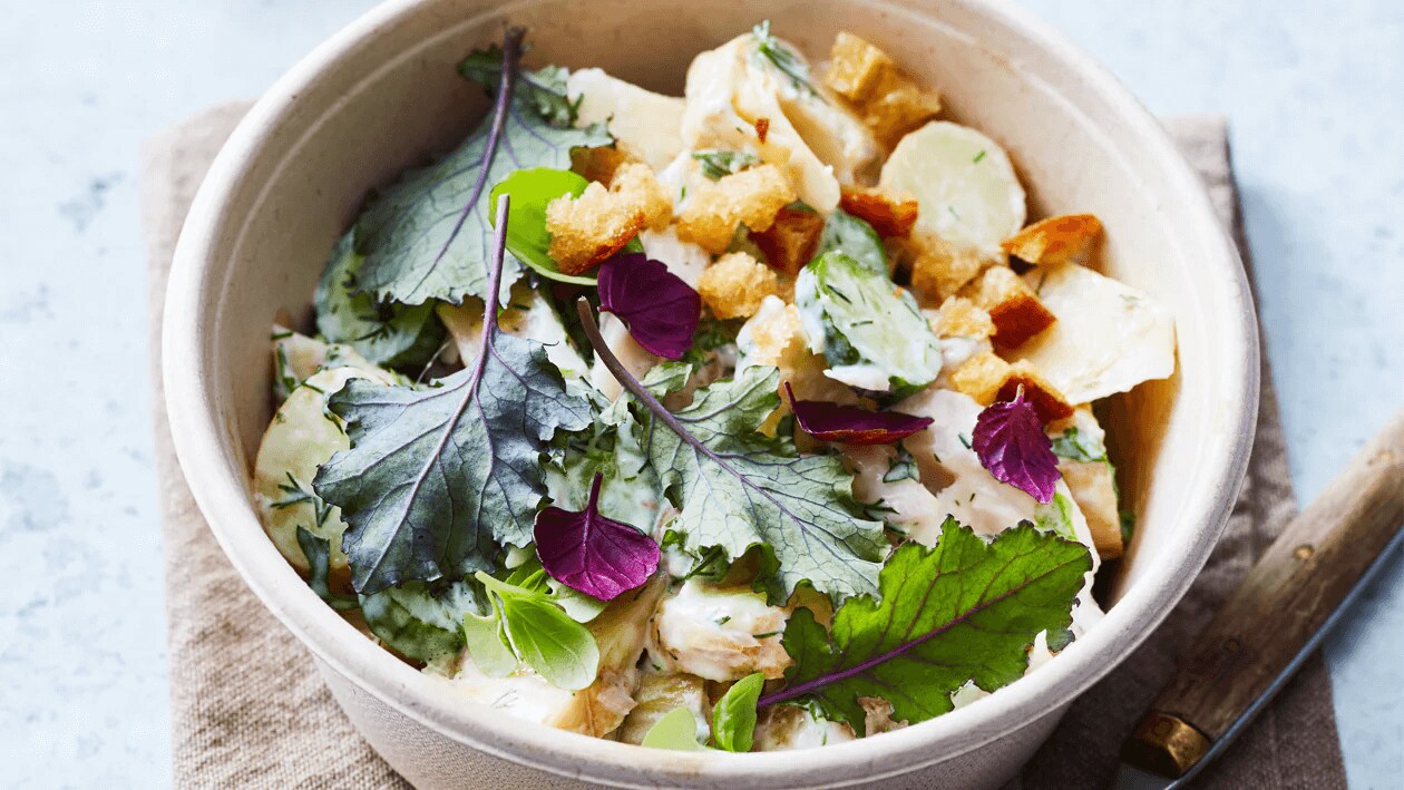 Salade de pommes de terre, truite fumée, artichauts (livraison)