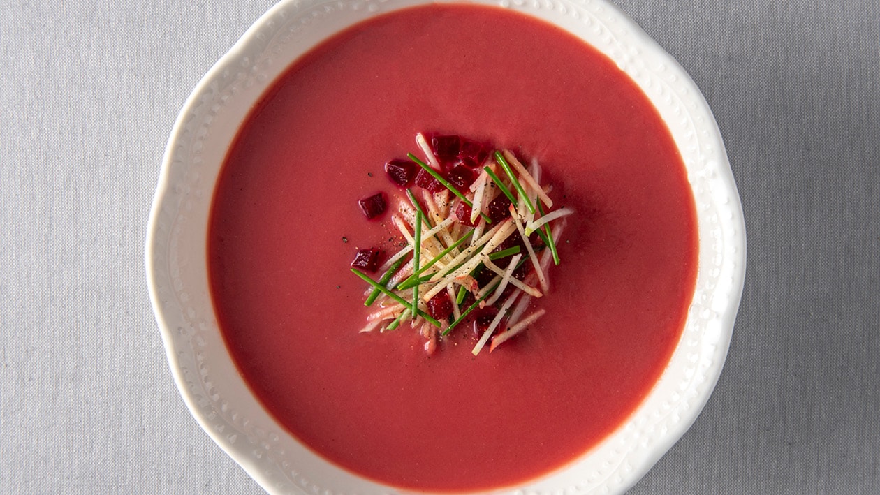 Soupe de betterave rouge, chou-rave et pomme