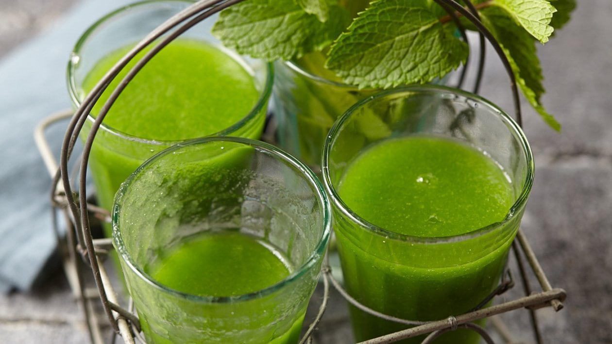 Soupe froide marocaine au concombre avec mini-concombres et menthe