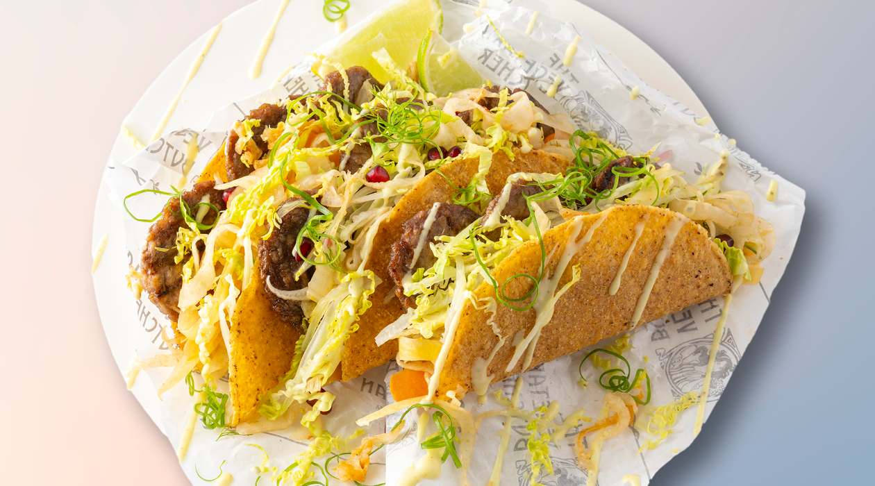 Tacos orientaux aux boulettes végan et à la salade de chou