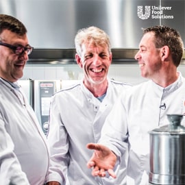 De emulsie is ook belangrijk om een goede consistentie te verkrijgen. Na het mixen van de vaste materie, verrijken we de textuur met een vloeistof (water, vetstof zoals Phase Plus of Solo Professional). Nadien voegen we een hoeveelheid Knorr Bereiding voor Terrines, Soufflés en Gratins aan toe om de juiste textuur te verkrijgen.