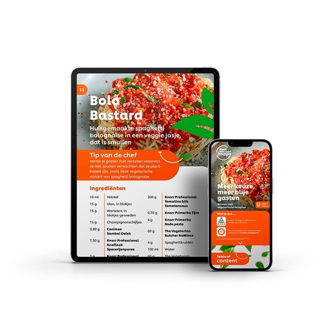 In deze gids vind je een aantal originale & traditionele recepten die herwerkt zijn tot een vegetarische versie, waarmee je nieuwe klanten zal aanspreken. Ontdek onze tips om jouw kosten te drukken en aan efficiëntie te winnen, en dit alles zonder aan kwaliteit in te boeten.