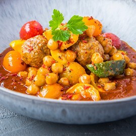 Een vegetarische kikkererwtencurry wordt een stuk gevarieerder door de ruime portie peulvruchten die je erin verwerkt. Door de kruiden waarmee je je gerecht afwerkt, kan je alle kanten op. Serveer naast deze curry een kommetje falafels dat je in het midden van de tafel plaatst.