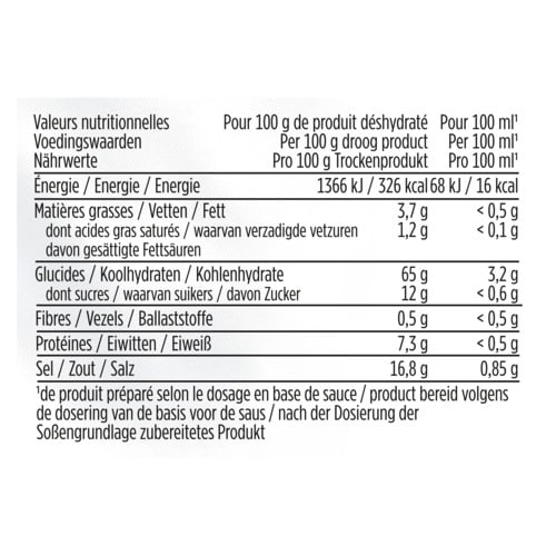 - Deze smaakmaker start droog en is makkelijk oplosbaar.
