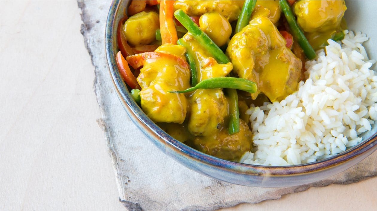 Chinese Kip met curry-kokos, groenten en rijst (huisgemaakt)