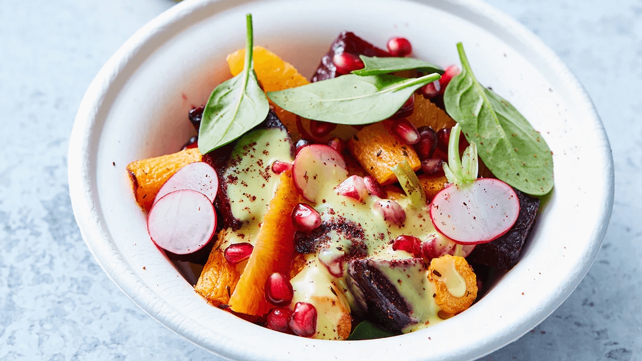 Geroosterde bieten en bospeen salade met sumak (delivery)